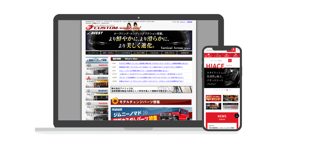- アメ車・国産ミニバン・ラグジュアリー車まで、多様な車種に特化したECショップを展開。全国のお客様に向けてパーツを販売しています。